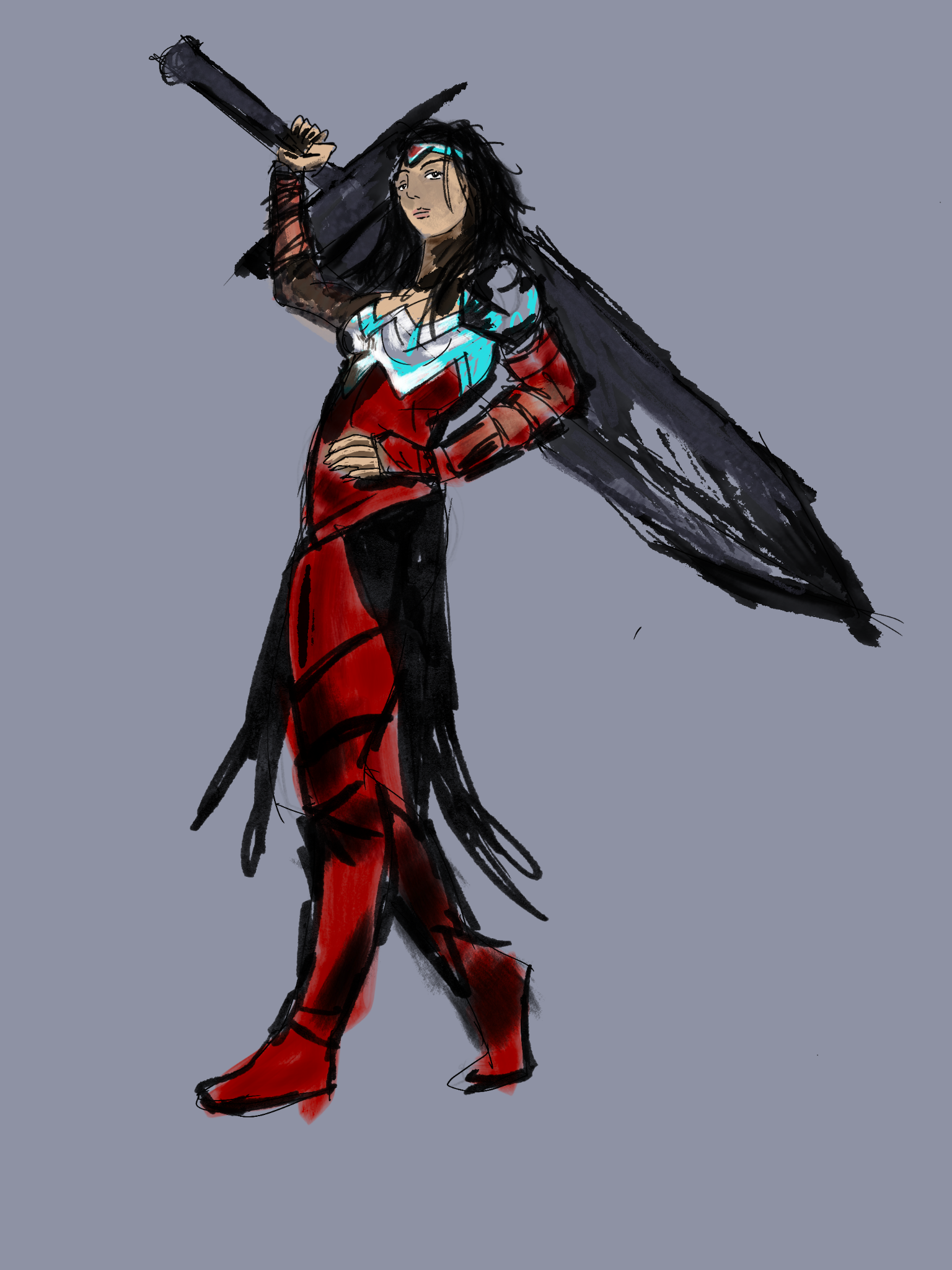 DC Comics has come out with an Absolute line of their flagship characters. Absolute Wonder Woman captures the essence of Guts from Berserk in terms of character design. I was practicing my Chommang draw overs of reference photos and found one reference on Pinterest of a model holding a greatsword and decided to use that.