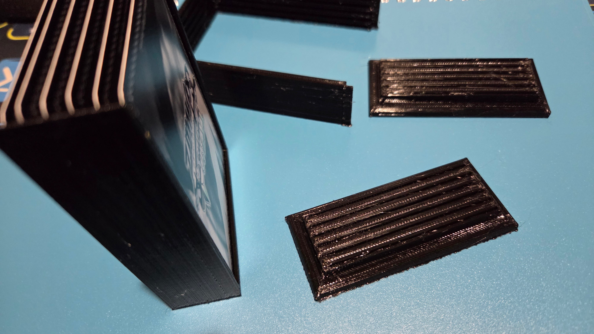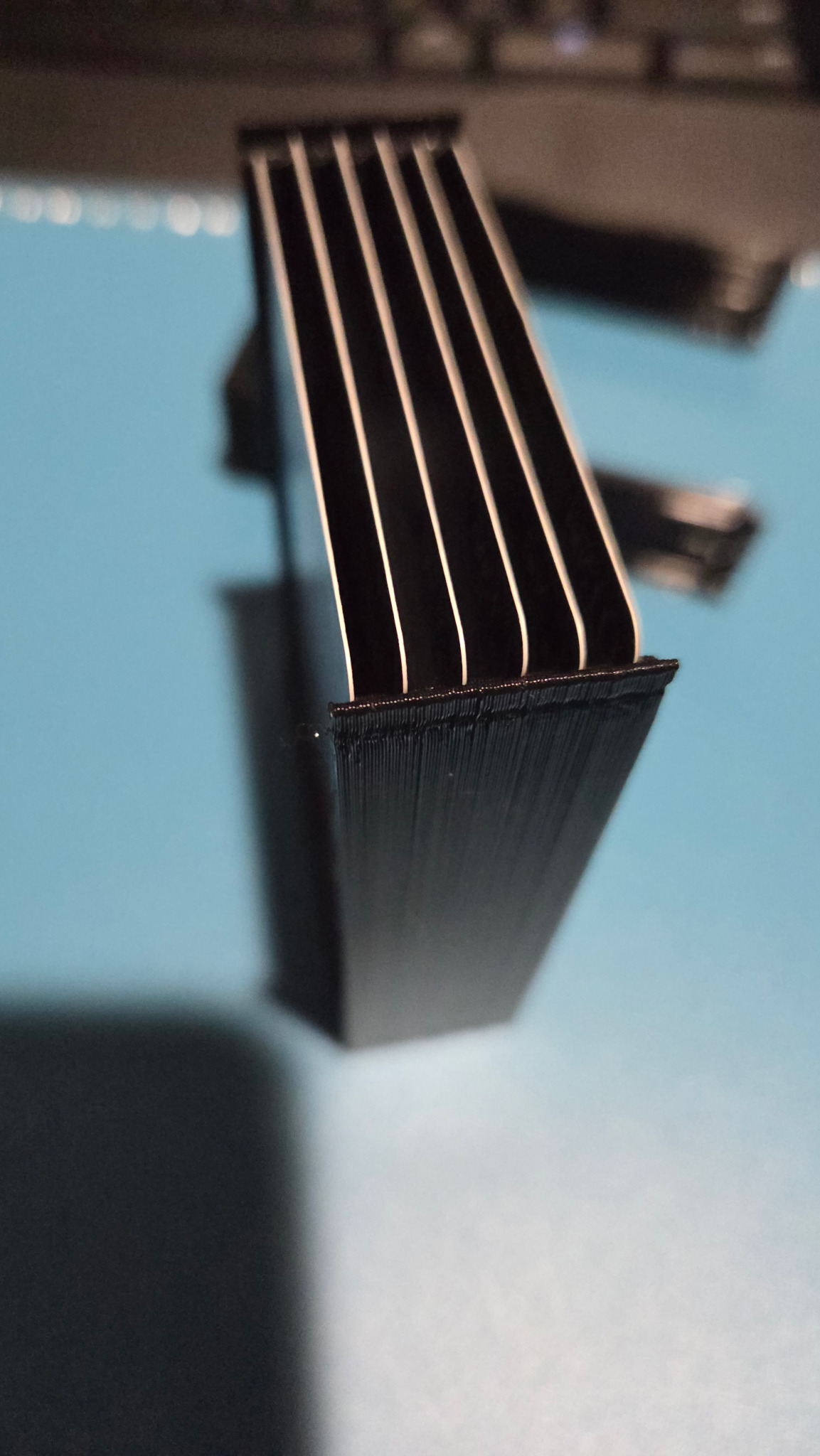 I also found another STL file for making a card holding jig to make sure that every card I layer and glue together is uniform and will clean up the appearance and make it look more professional. The only thing I need to remember when working with the jig or the 3d printed shadowbox is to use black paint to coat the edges where I cut the cards to help them blend together better visually.