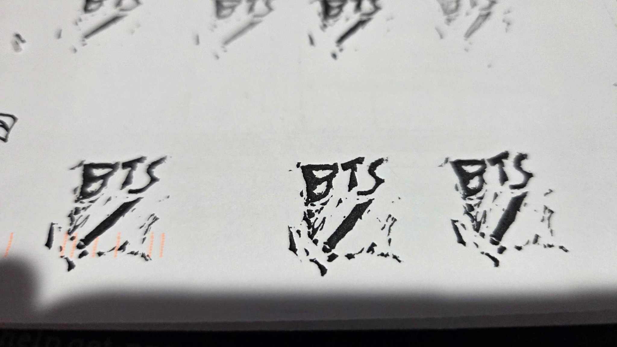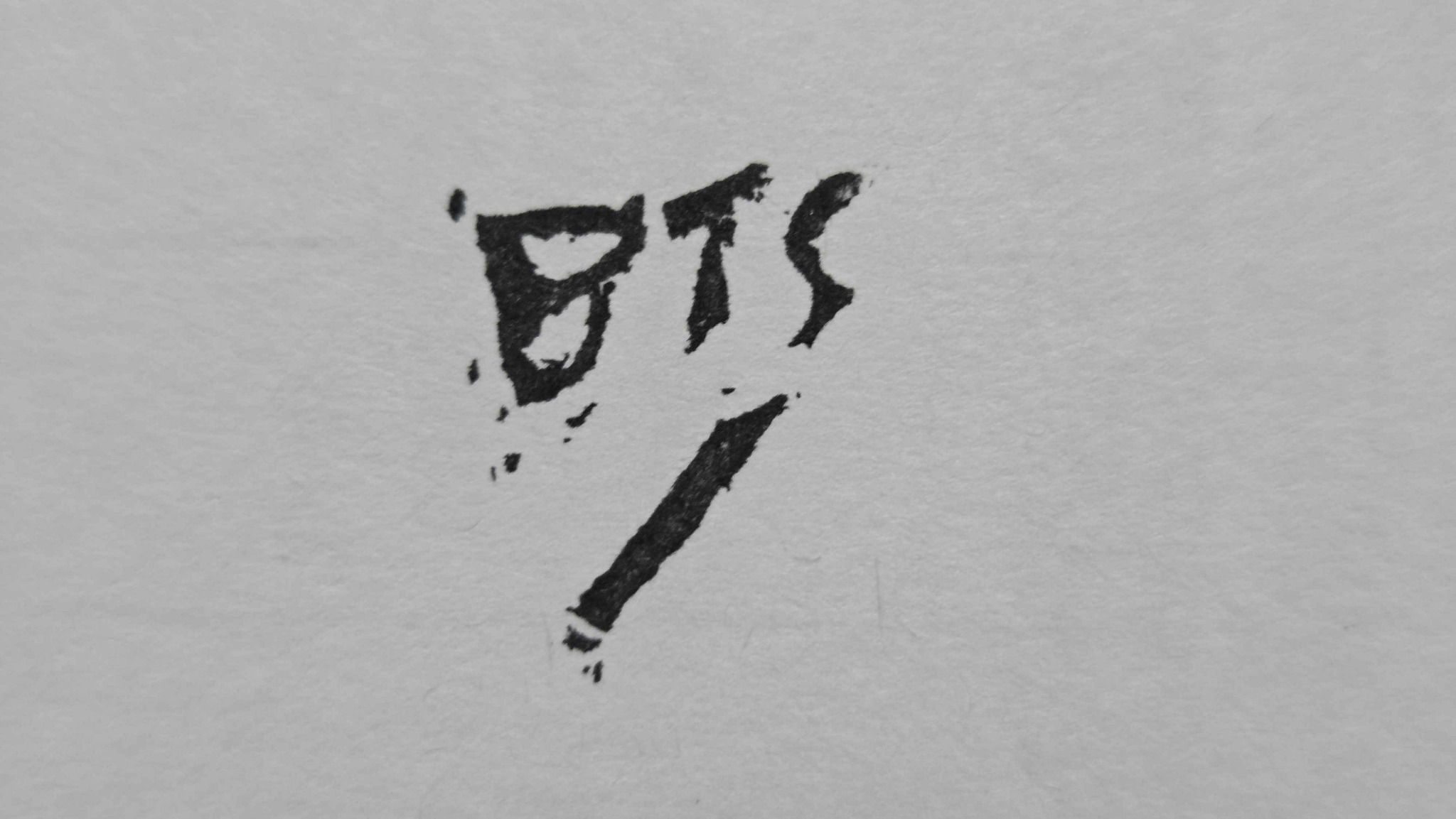 For my signature, I figured that I could use a stamp for my linocut prints when I get to making them. Traditionally, an artist is supposed to utilize a pencil in order to prevent facsimiles from being made. I will be using a pencil for filling out the series number where the "/" appears below "BTS." I will also add the year the print was made, below the series number that is filled out.