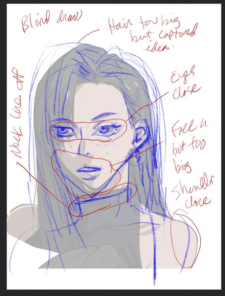 This is day three of doing the TRBC method for learning anime/manga art style. I felt like I did a little bit better on this one today. I'm not sure if it is just my own bias or if my drawings were a bit tighter in the Reference and Blind illustrations. Both of them had their good qualities and bad qualities. There's still a lot of room for improvement for sure, but it is encouraging to see some small improvement.